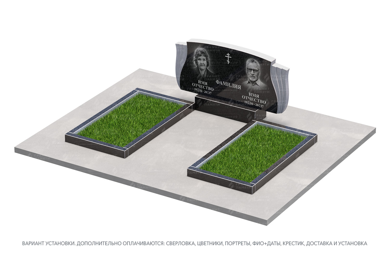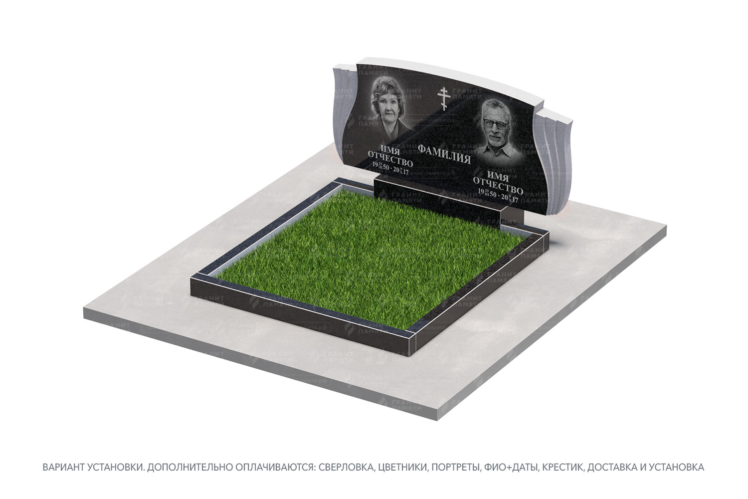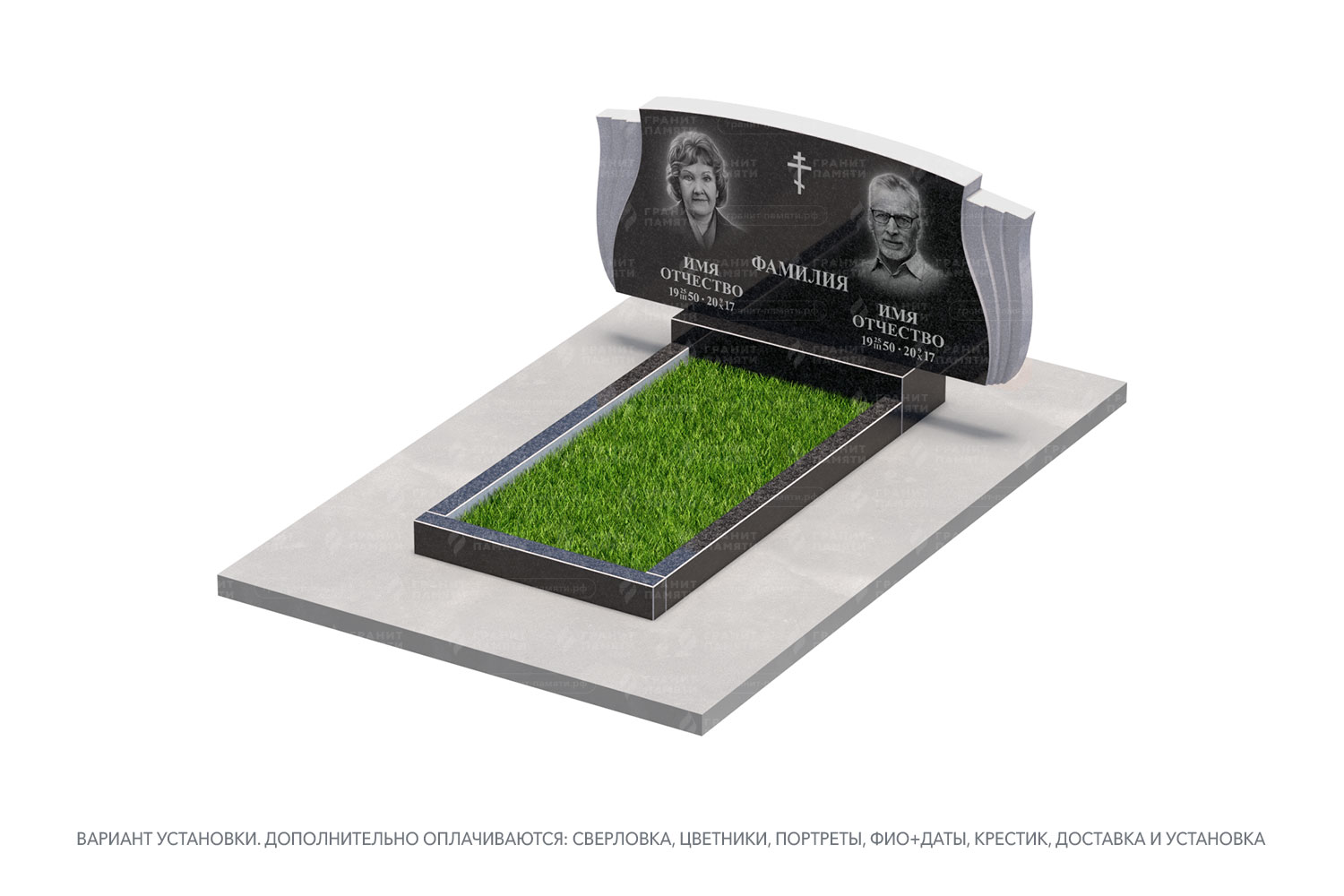 цветник, сверловка, портрет, ФИО+даты, крестик, доставка, установка.