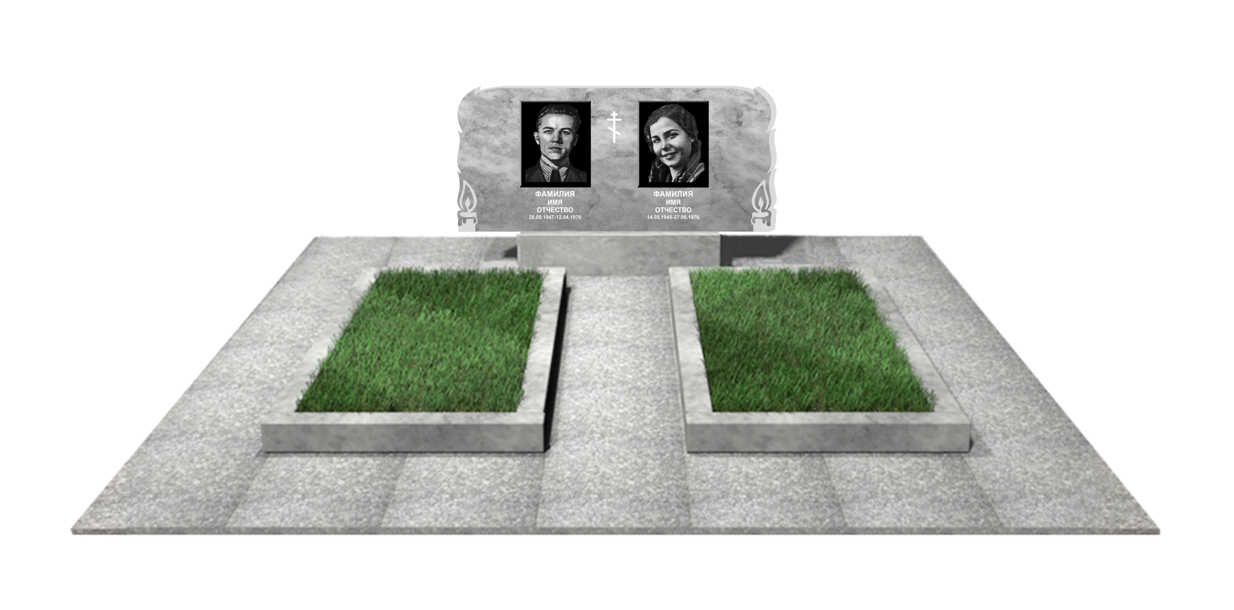 Памятник двойной универсален. Форма ФМ-133 подходит для увековечивания памяти и мужчины и женщины. Памятник из натурального Мрамор не изменит своего первозданного вида многие десятилетия.