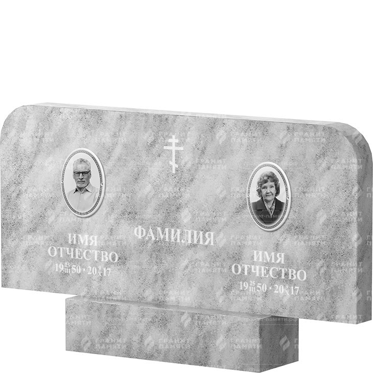 Памятник двойной универсален. Форма ФМ-254 подходит для увековечивания памяти и мужчины и женщины. Памятник из натурального Мрамор не изменит своего первозданного вида многие десятилетия.